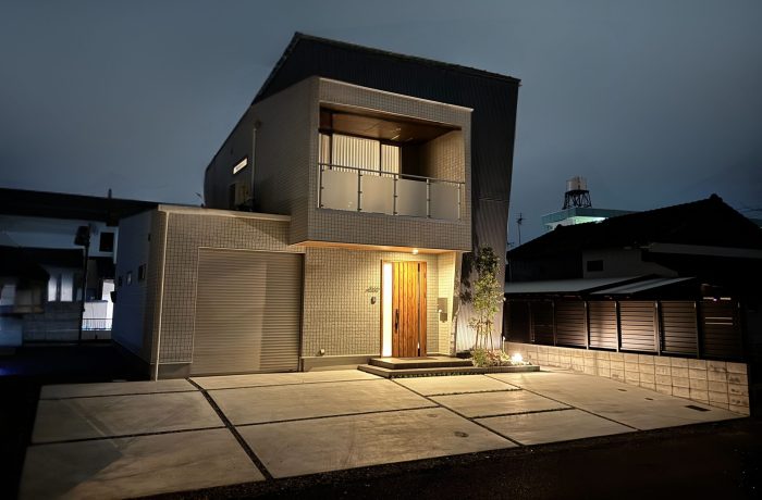 外観は、植栽をライトアップし、より一層おしゃれに仕上がっています。