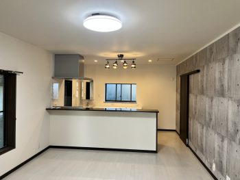 施主さまと息子さんご夫婦が同居されるためのリフォーム工事を、施工させていただきました! 和室の続き間を全面的に改修させていただきました。 今人気のグレーの壁紙を使用し、全体的にシックに仕上がっています。 写真でもわかる通り、広々とした明るく使いやすい空間になりました。