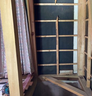 そのあと、筋交いと柱に柱接合金物・筋交い金物を取付し、補強工事を行いました。