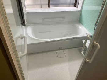 在来浴室(タイル貼りのお風呂)から、断熱性・気密性の高いユニットバスに変更しました(TOTO)
